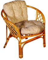 Удобное кресло из натурального ротанга с мягкой подушкой.