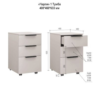 Модель тумбочки приставная к столу / для хранения документов