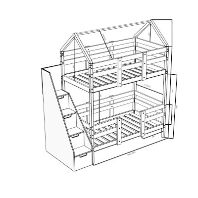 Детская двухъярусная кроватка-домик Classic из сосны с лестницей-комодом из качественного ЛДСП — это лаконичный дизайн, безопасные материалы и краски, качественное исполнение, простота в сборке! Лестница-комод устанавливается с торца кровати и обеспечивает помимо удобного входа на второй этаж кучу места для хранения в выдвижных ступенях-ящиках. Сборка не универсальная - только как на фото.