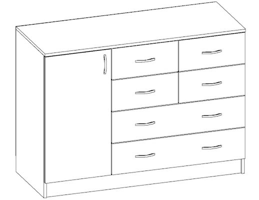 • Корпус, полки и фасады изготовлены из ЛДСП 16 мм с кромкой ПВХ 0,4 мм.
