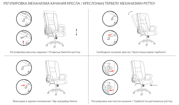 Тип механизма кресла: "топ-ган" качание с регулировкой под вес и фиксацией в 1 положении