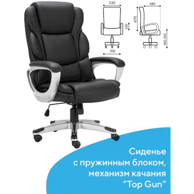 Надежный механизм качания "Top Gun" обеспечивает хорошую поддержку спины и поясницы за счет возможности свободного качания с фиксацией в одном рабочем положении и регулировку угла наклона под вес сидящего.