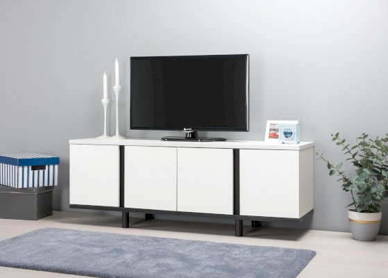 Это графичное сочетание, которое всегда на пике моды. Монохромный декор тумбы ТВ легко впишется в самый сложный интерьер. При изготовлении используются качественные ЛДСП толщиной 22 мм и 16 мм, кромка толщиной 2 мм и 1 мм. Такие материалы придают солидность внешнему виду, обеспечивают надежную основу и более долгий срок службы. В столешнице имеется вырез под провода для подключения мультимедиа техники, а регулируемые опоры легко компенсируют неровности пола.