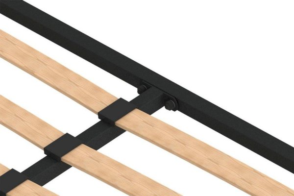 Кроватное основание - опора спального места, необходимый конструкционный элемент, который гарантирует оптимальную поддержку тела во время сна и правильное распределение нагрузки, а также усиливает ортопедические свойства матраса, в итоге делая эксплуатацию кровати более комфортной. Каркас модели изготовлен из металлических труб 3х3 см квадратного сечения, покрытых порошковой краской черного цвета; решетка состоит из гибких березовых латофлексов. Ламели надежно крепятся к раме с помощью прочных держателей, обеспечивая высокий уровень амортизации, а промежутки между ними позволяют воздуху свободно циркулировать.