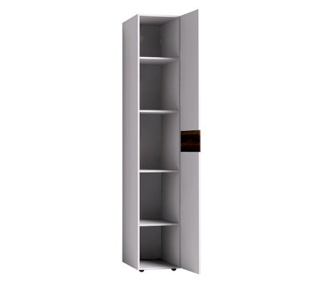 Шкаф для белья Норвуд 55 с рядом регулируемых полок по высоте. Глухой фасад с декоративной вставкой из ЛДСП. Двери шкафа перевешиваются как на правую, так и на левую сторону.