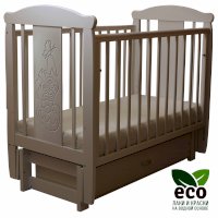 Кроватка декорирована фрезерным рисунком "Собака в чашке". Уникальные фрезерные рисунки размером от 50 см на обеих спинках.