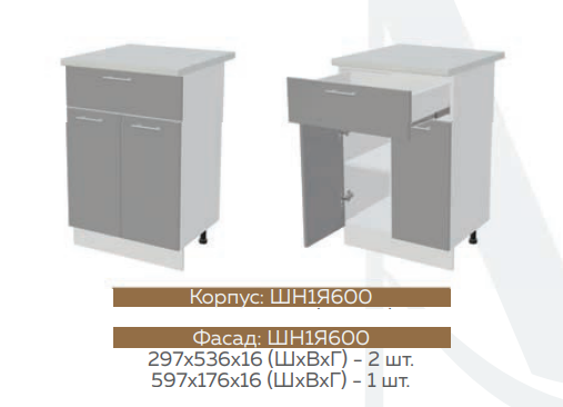 ШН1Д1Я600 Шкаф нижний с 1-м ящиком и 1-й дверью Белый глянец холодный/Мрамор глянец