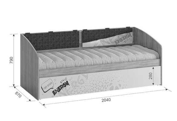 Дополнительное удобное спальное место или большой выдвижной ящик для хранения постельного белья и игрушек, на выбор, решать вам. Стильный принтерный рисунок на фасаде, и карманах. Чехлы подушек съемные, что позволит обеспечить чистоту и порядок. Детская «Энерджи» - это стильная, современная детская, которая понравится каждому ребенку. Рисунок устойчив к истиранию и ультрафиолету.