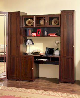 Широкий выбор модулей коллекции SHERLOCK помогает создать уютную гостиную с комфортным рабочим местом, что очень важно для маленькой квартиры. Вместительный 15 Стол письменный можно расположить между шкафами и навесить над ним 4 Шкаф навесной на любой удобной для Вас высоте. 5 Тумба МЦН – отличный вариант не только для хранения вещей, но и для размещения на ней телевизора. Шариковые направляющие тумбы обеспечивают плавность хода выдвижных ящиков. Большой выбор шкафов коллекции SHERLOCK дополнит и то, что 10 Шкаф угловой можно выбрать либо с фасадом Стандарт, либо с фасадом Зеркало. Все фасады модулей коллекции декорированы классическим переплетом из МДФ.