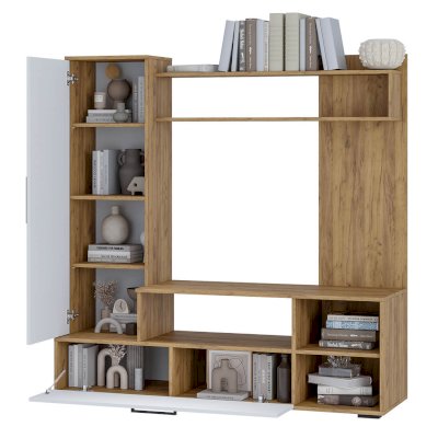 Гостиная Евро-2 – отличный выбор для небольшой комнаты, который с лёгкостью впишется в интерьер любого стиля. Компактный размер данной модели сумел вместить в себя различные места хранения, а также ТВ зону. Светлые фасады в комбинации с корпусом, открытые полки для ваших любимых книг или сувениров, элегантная лицевая фурнитура.
