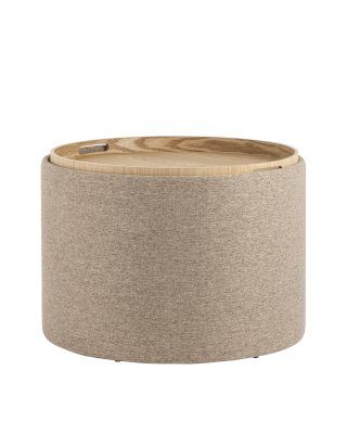 Мягкий пуф с ящиком станет незаменимым украшением интерьера. Он не только удобный, но и функциональный. Благодаря двухсторонней крышке, пуф можно трансформировать в журнальный столик. Столешница выполнена из светлого дерева с бортиками по краям и вырезными ручками для удобства, и безопасности при использовании. Крышка пуфика полностью съемная и при необходимости её можно использовать как поднос. Полезное дополнение - ящик для хранения различных мелочей, внутри обит тканью. Компактный и вместительный, такой пуфик наполнит пространство особым уютом и теплом. Подойдет для любого интерьера - как в классическом стиле, так и в современном.