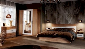 Спальня Антария – это дух творчества и самобытного стиля. Нестандартные фасады ЛДСП с асимметричными скошенными линиями вносят свободу и движение в жилое пространство, делают интерьер более сложным и необычным, придают характер и индивидуальность. Декор фасадов повторяет цвет и рисунок натурального дерева. Оптимальный набор модулей поможет вам создать яркий и функциональный интерьер, отражающий ваши вкусы и предпочтения.