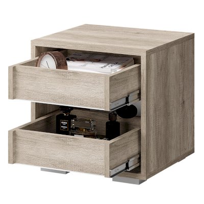Стильная прикроватная тумба Наоми дополнит вашу спальню. Модель не имеет фурнитуры. Ручки интегрированы в фасады двух выдвижных ящиков. Комбинация цветов позволит тумбе стать частью светлого современного интерьера.