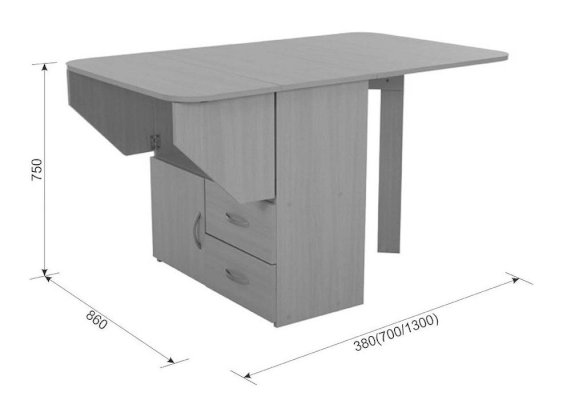 | Длина разложенного столика, мм | 1300 |