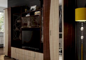 Артистичные, возвышенные натуры захотят приобрести гостиную «Бриджит». Ведь несмотря на крупные габариты, этот комплект мебели кажется изящным и невесомым. Ощущение легкости привносят в обстановку светлые оттенки, а также элементы из стекла и зеркал. Эффект устремленности вверх усиливают абстрактные рисунки, состоящие из тонких плавных линий.