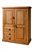 За дверкой слева полка, за дверкой справа 2 полки, 3 выдвижных ящика.