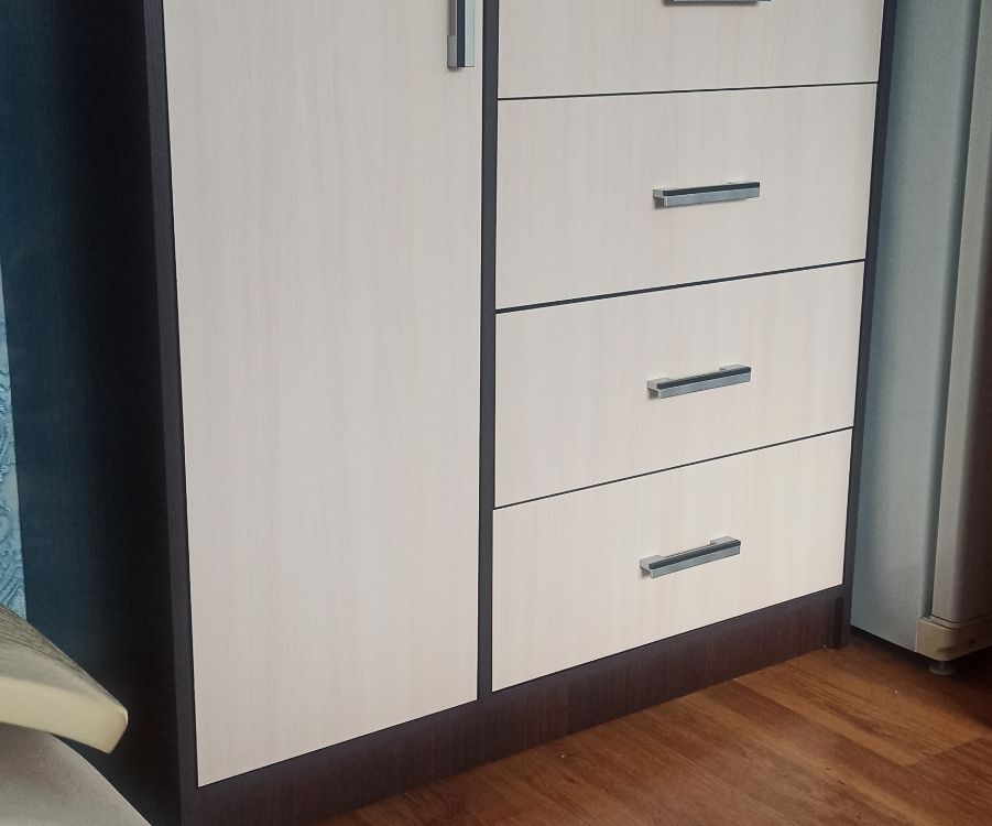 Выбирали комод по фото. Даже не ожидали, что комод окажется настолько качественным и красивым! Все детали без дефектов и сколов, что очень порадовало! Достаточно крепкая фурнитура, крепкие салазки. Приятно, что продавец очень внимательный и положил даже наклейки для того, чтобы закрыть место крепления! Однозначно рекомендую к покупке! Теперь хотим угловой шкаф и тумбу из этой же серии мебели, чтобы собрать комплект.
