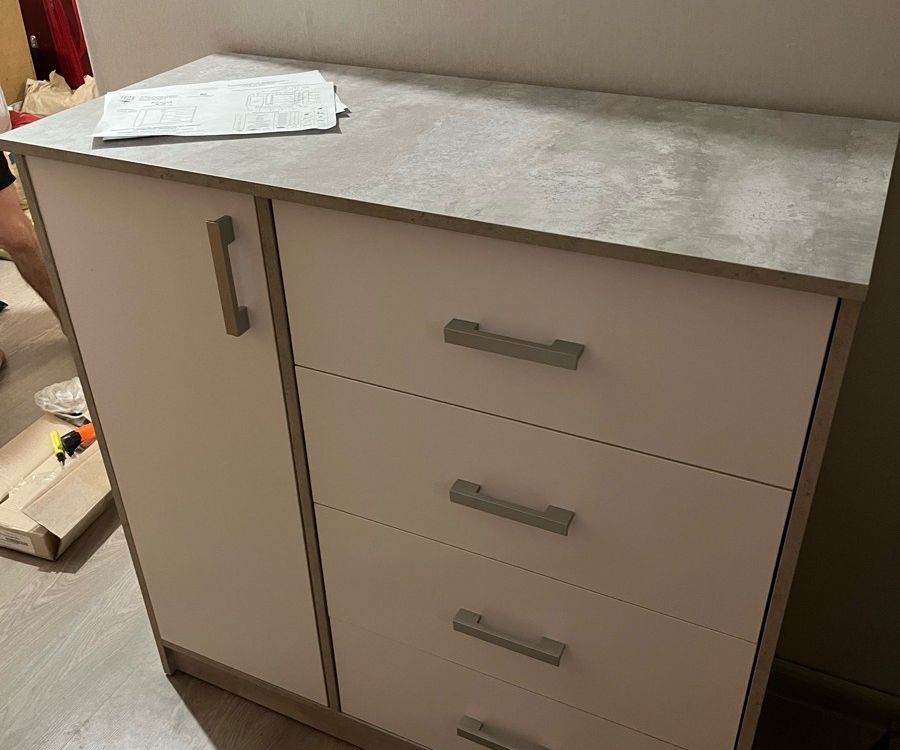 Отличный комод, влюбилась, как только увидела на фото! Фасад очень хорошего качества , брака не было, полная инструкция на сборку в удобном формате, комплектующие все есть! Ящики и двери фиксируются плавно, при полном закрытии. На сборку ушло всего 2 часа, нам помог шуруповёрт, а доставка в Воронеж была неделю) Ставлю этому комоду 100/10, цена вообще вау, взяли по скидке !)