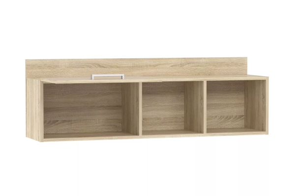 Полка органично дополнит рабочее место в детской. Закрытая секция модуля подойдет для хранения книг. Газлифты максимально высоко поднимают фасад вверх, обеспечивая большую площадь обзора содержимого. Предметы декора будут хорошо смотреться в открытых секциях полки.
