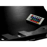 Дизайн стола достаточно простой, но современный — столешница с декоративным покрытием «под карбон» на двух устойчивых ножках в универсальном черном цвете. По боковым кромкам встроена яркая LED-подсветка, которую можно легко регулировать пультом дистанционного управления.