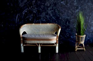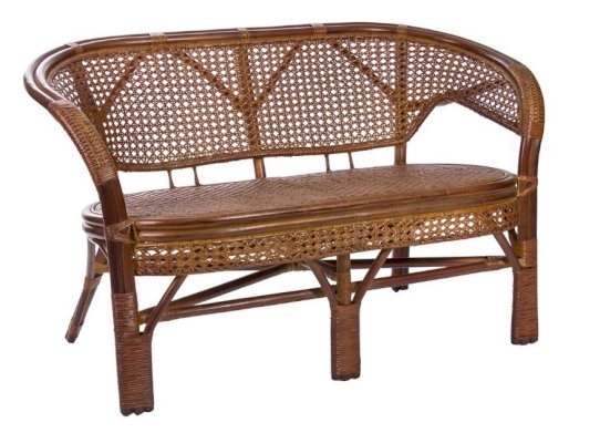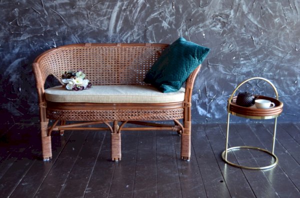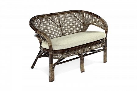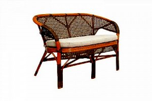 Двухместный диван из ротанга с подушкой.