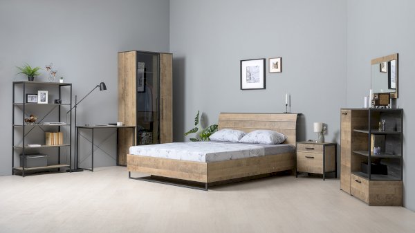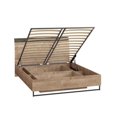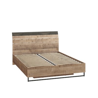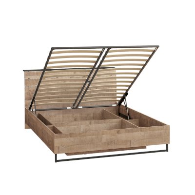 Планкованное изголовье с изгибом — два варианта конфигурации: с полкой и без неё. Кровать может быть оснащена ортопедическим основанием с подъёмным механизмом, который открывает доступ к вместительному коробу для хранения.