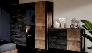 Спальня «Стокгольм» – это современная функциональная система, которая станет главным украшением лофтового интерьера. Особенность дизайна – это сочетание реалистичных по цвету и тактильности трендовых декоров, которые соответствуют последним городским тенденциям. «Дуб Гранж» привлекает имитацией вручную обработанного дерева с выразительной зернистой текстурой, характерной формой досок. Стильный серый цвет «Железного камня» с металлическими разводами и новая текстура состаренной штукатурки в сочетании с гладкостью металла вносят индустриальныи? колорит. Оригинальные ножки-опоры из контрастного профиля МДФ, расположенные по бокам модулей, имитируют металл и подчеркивают стиль коллекции. Кровать выполнена в простых и лаконичных формах, мягкая накладка с вертикальной прострочкой комфортно поддерживает спину во время отдыха. Скрытые опоры основания придают эффект парения, создают завораживающий футуристический интерьер.