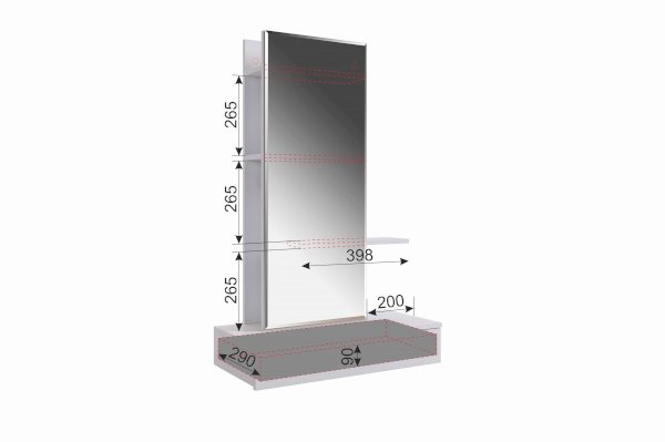 Способы установки полок смотреть в паспорте при сборке. Рядом с полками на задней панели предусмотрены стильный крючок для украшений или фена.