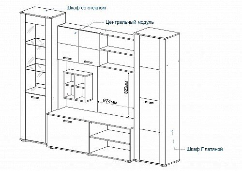 | Длина ниши под телевизор, см | 97 |