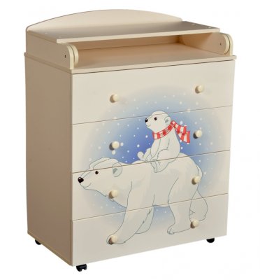 Венге/слоновая кость Пеленальный комод 800/4 Lilu 1 отличается привлекательным дизайном с использованием тематических детских принтов. В конструкции изделия предусмотрены 4 маленьких передвижных колеса, несколько вместительных ящичков на шариковых направляющих и откидывающаяся пеленальная столешница. Детский пеленальный комод, декорированный красочным рисунком, вмещает в себя постельные принадлежности, средства гигиены, распашонки, подгузники, игрушки, ползунки и другие личные вещи ребенка. Гладкая столешница идеально подходит для пеленания ребенка, а колесики позволяют быстро перемещать комод.