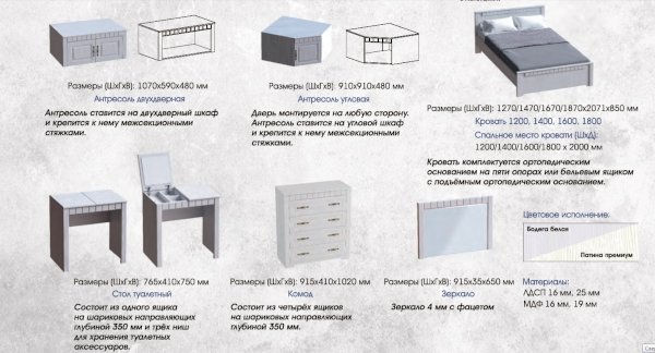 Модульная спальня Прованс (МБГ) - за 42 843 руб. в Павловском Посаде. Купите на сайте pavlovskii-posad.onlinemarketmebeli.ru или по телефону 8(800)505-30-63 уже сегодня! Уточнить наличие, комплектацию, актуальную цену можно бесплатно у менеджера ежедневно. Закажите Модульная спальня Прованс (МБГ) до конца акции! Доступна покупка в кредит, рассрочку. Доставим со склада или на заказ.