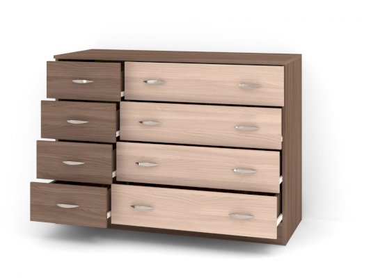 Данное изображение представлено в следующих цветах ЛДСП: корпус - Ясень Шимо тёмный, фасады - Ясень Шимо светлый.