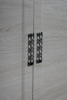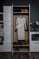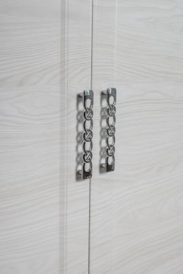 Элегантный двухстворчатый шкаф будет прекрасно смотреться в интерьере. Функциональность данной модели заслуживает внимания: внутри две вместительные полки и выдвижная штанга. Не остается незамеченной и изящная форма ручек – она придает шкафу дополнительный шарм.