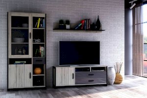 Тумба комбинированная Техно Дуб Крафт белый/Серый шифер 678210
