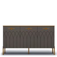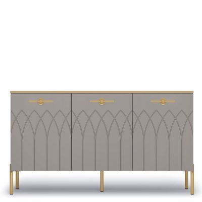 Большой комод - модное решение для современного интерьера. Мягкие серые оттенки «мокко» и «силк анис» сочетаются с золотым декором и яркой лицевой фурнитурой.