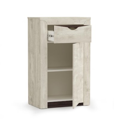 Тумба – отличное решение для комбинированного размещения ваших вещей, ведь она представляет собой комод и пенал одновременно. По функционалу похожа на модель 33.19, так как тоже имеет выдвижной ящик и распашную дверцу, за которыми скрываются две полки. Но она выше и уже, а внешне выглядит более миниатюрно и изящно. Сверху находится выдвижной ящик, а под ним – отсек с двумя полками. Конечно, она не такая вместительная, как предыдущая, поэтому ее часто выбирают в прихожую – для спальни она маловата. Как вариант – сформировать мебельную группу из двух тумб – 33.19 и 33.20. Тогда у вас точно поместится все!