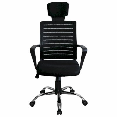 Высокая сетчатая спинка и подголовник, выраженная поддержка поясницы, прочные пластиковые подлокотники, хромированное пятилучие гарантируют комфортное долгосрочное использование.