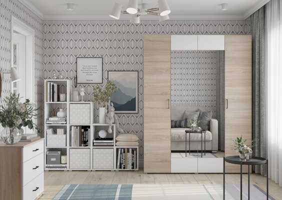 Шкаф 4-створчатый 1800 Комбинированный (2 створки с цветом фасада Венге, Белый или Сонома/2 створки Бетон или Крафт золото)
