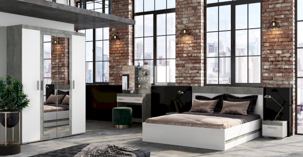 Отличный выбор для современной спальни – это кровать Инстайл. Использование белого цвета в каркасе придает модели легкости и позволяет расположиться в любом интерьере. Часть изголовья выполнена в цвете бетон. Данный цвет является отличительной чертой модульной коллекции мебели Инстайл.